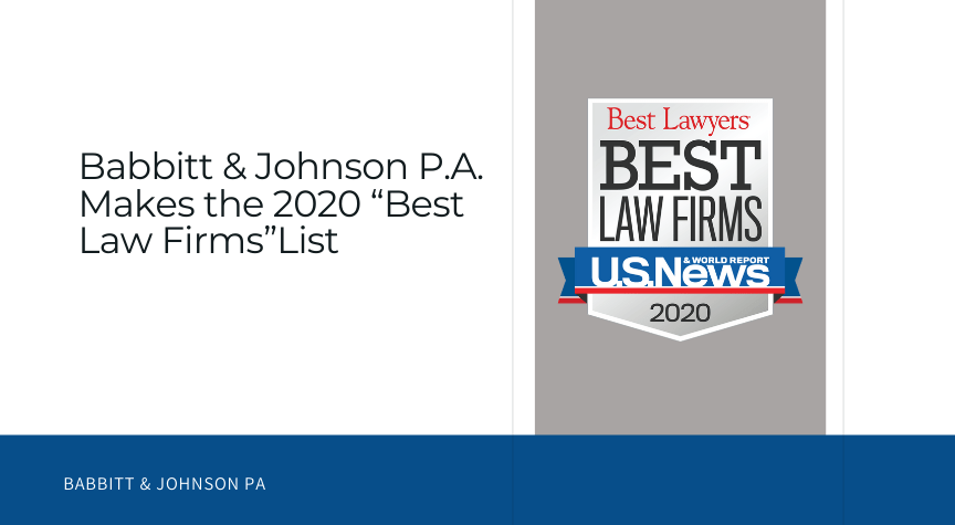 Read the full press release, “Babbitt & Johnson P.A. Makes the 2020 Best Law Firms List,” by clicking here.