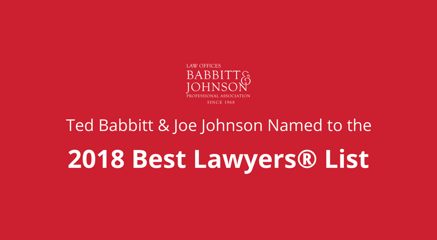 Personal injury attorneys Ted Babbitt and Joe Johnson have been recognized in the 2018 Edition of the Best Lawyers in America© list. Ted Babbitt has been recognized by Best Lawyers® annually since the 1987 edition. He has been selected by his peers in the following areas: Personal Injury Litigation – Plaintiffs Medical Malpractice Law – Plaintiffs … Read More
